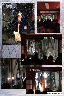地唄『ゆき』は、奥のお座敷で踊らせていただき、お客様は庭を挟んで観ていただくという趣向をとらせていただきました。