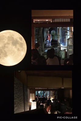松井酒造様から美味しいお酒の数々に美味しいおつまみ、お月さまパネルを背景に舞わせていただき、お客様の笑顔とお誉めのお言葉まで頂戴して、本当に楽しい時間を過ごす事が出来ました。