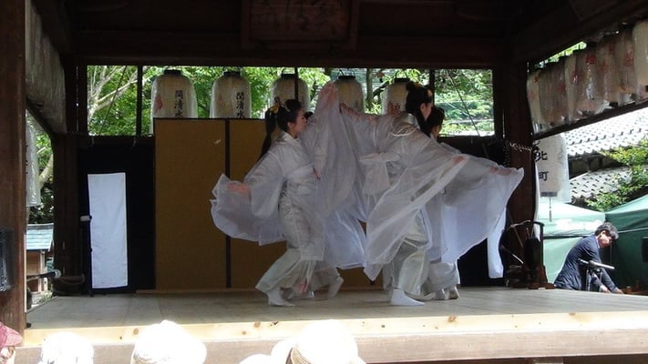 今回は白拍子の恰好で奉納の舞を披露するというシーンで、私自身が出演させていただきました。