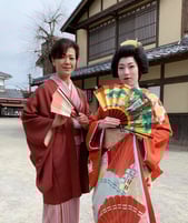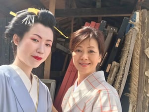 なんと!今回は私の門下生が芸妓役で舞わせていただきました。京都篇という事で太秦映画村にての撮影でした。
