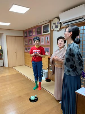 今回は日本舞踊を初めて習う時にお稽古する長唄「ことぶき」を皆さんに体験していただきました。最後にアン先生がインスピレーションを感じて踊ってくださいました!