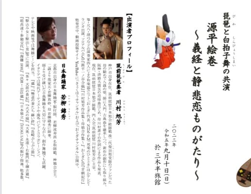 ◎琵琶と白拍子舞の共演『源平絵巻~義経と静 悲恋ものがたり~』のご案内